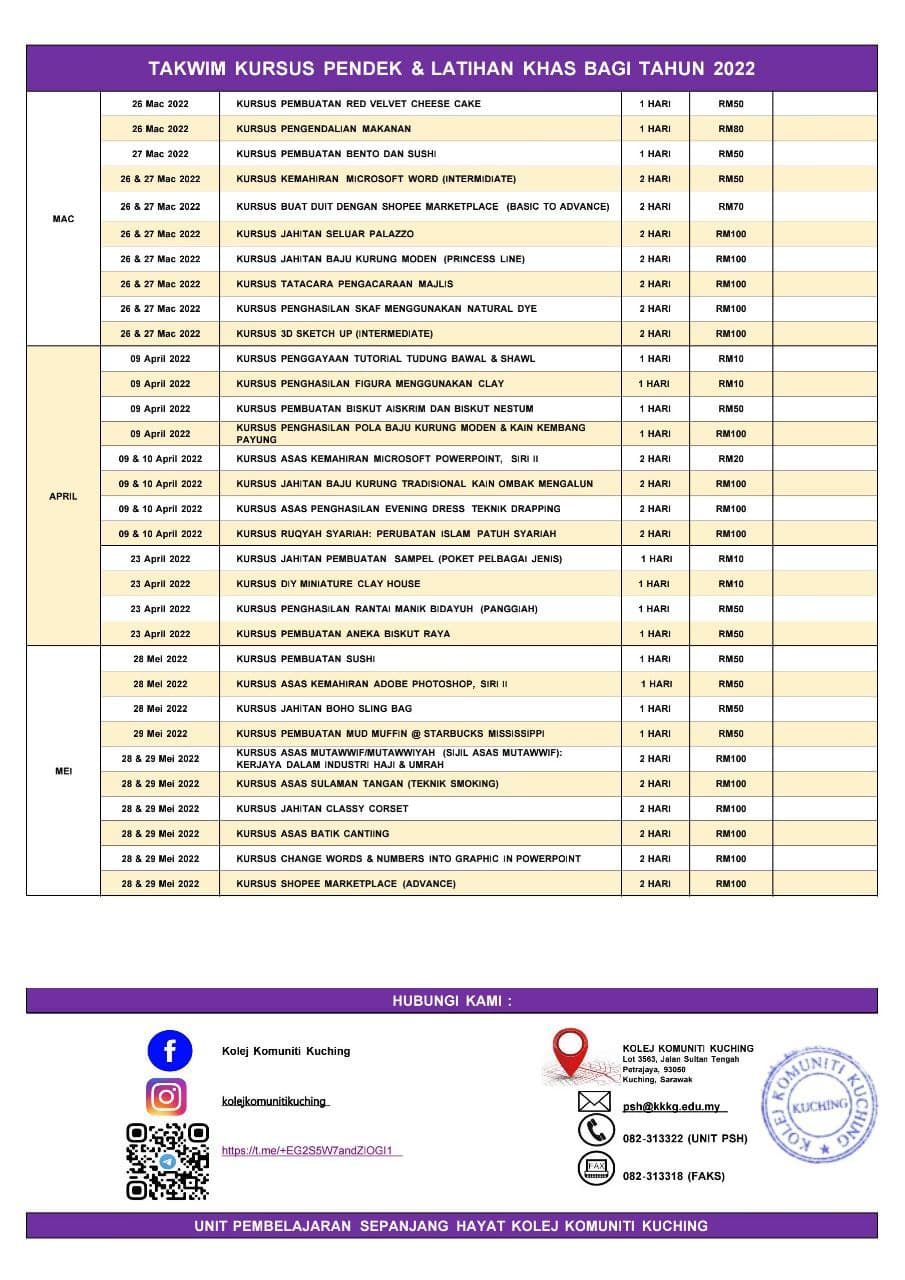 Senarai Kursus Plkk Tahun 2015 Bahagian 48 Kek Dan Pastri Pandan Selangor 12 Jan 2015 30 Jun 2015 Pdf Document