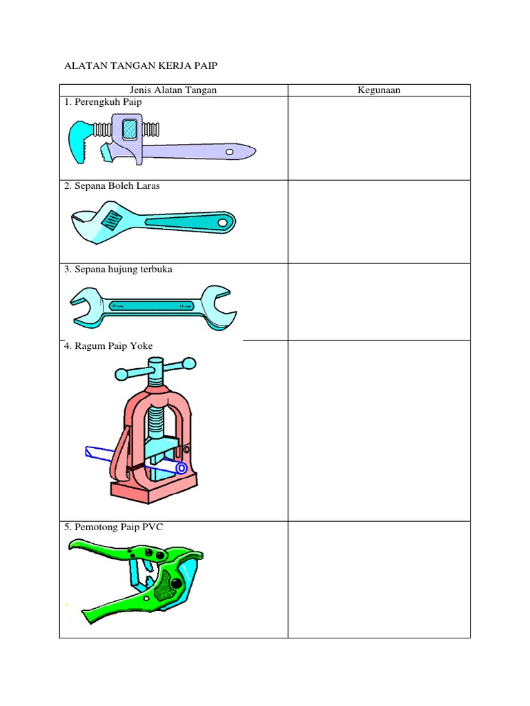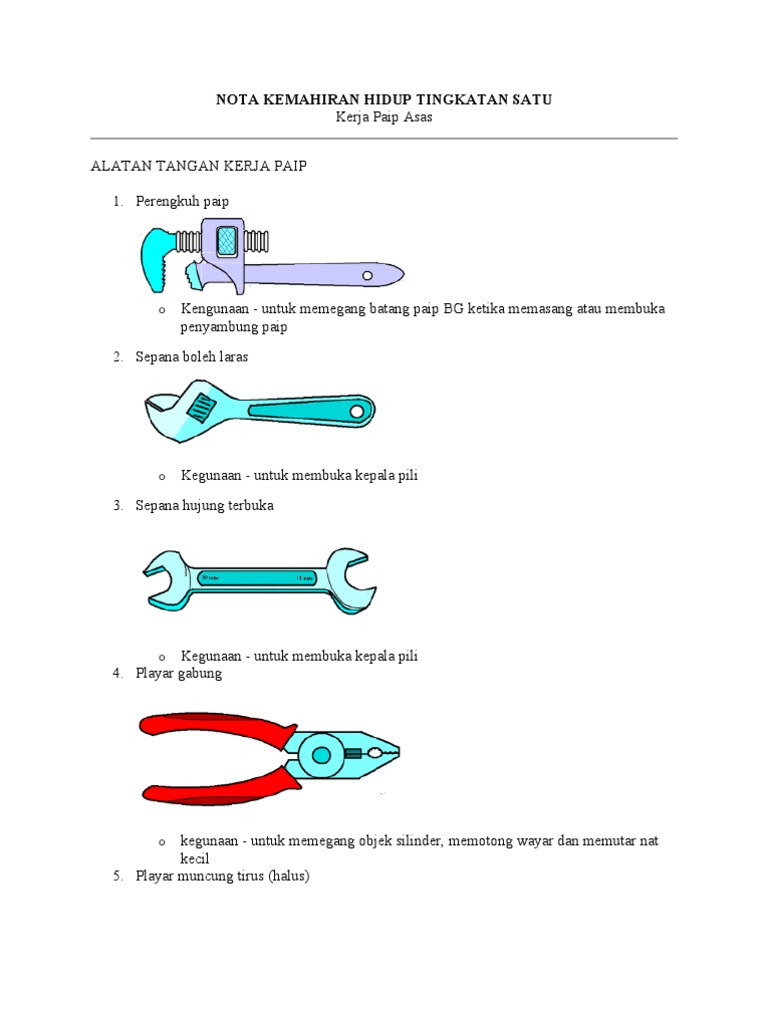Kemahiran Hidup Bersepadu Kegunaan Alatan Tangan Kerja Paip
